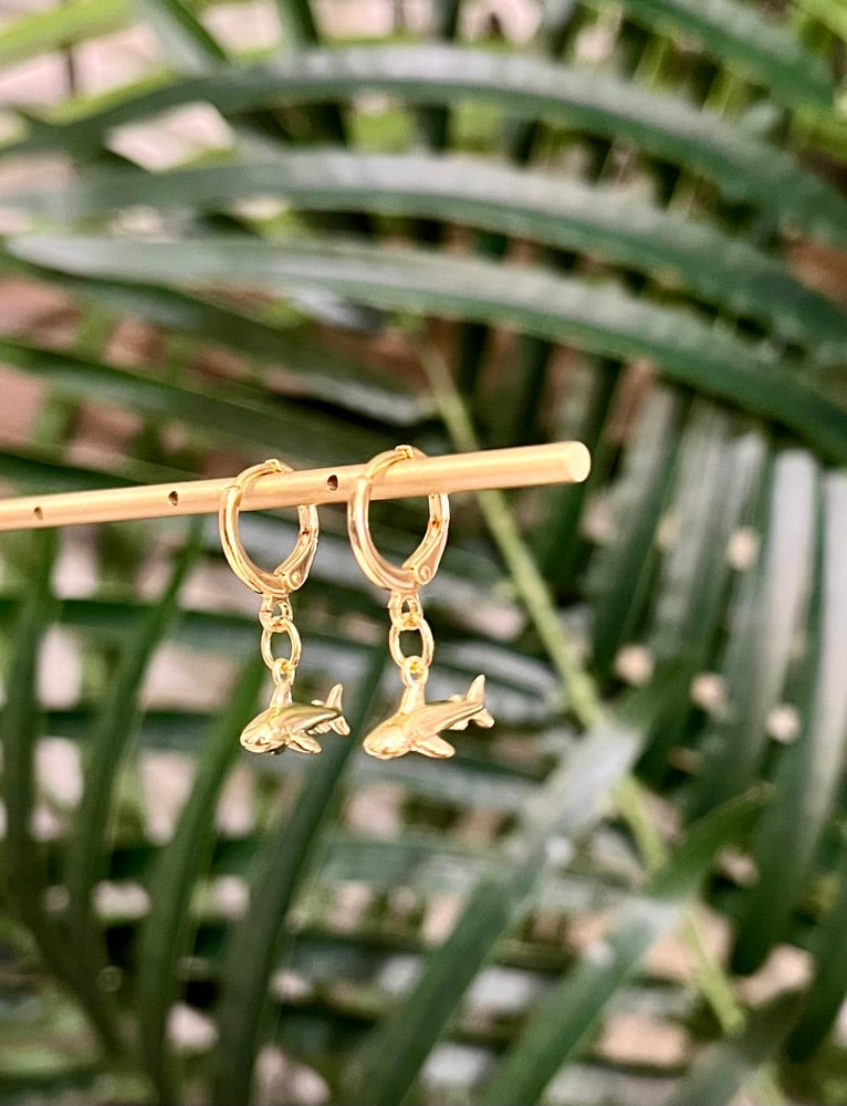 These are the smaller of the two shark earrings we have. The second picture shows the size difference to the bigger shark earrings.