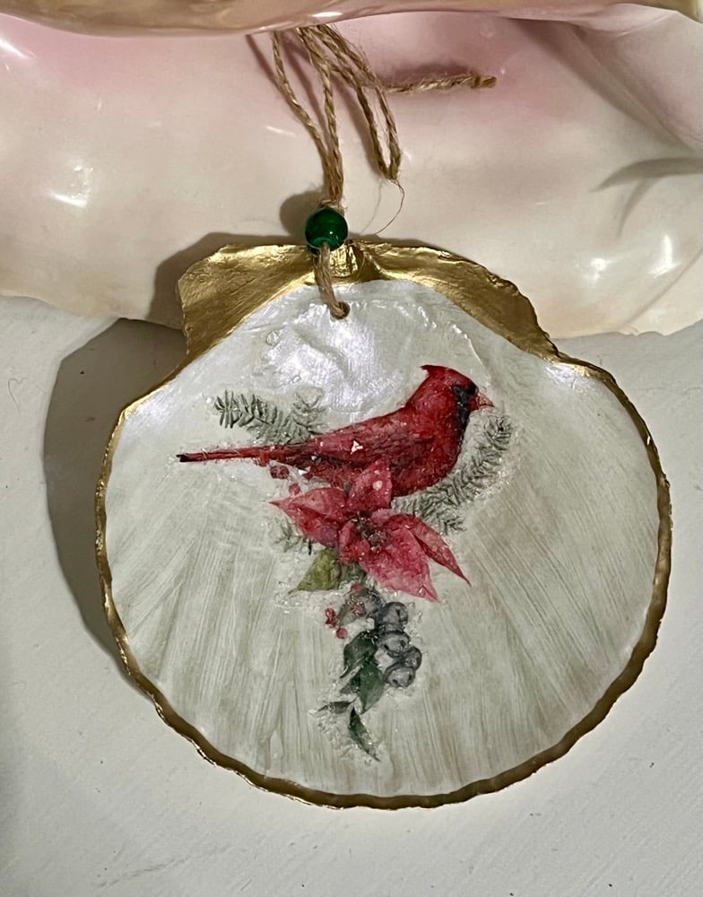 Cardinal Scallop Shell Ornament