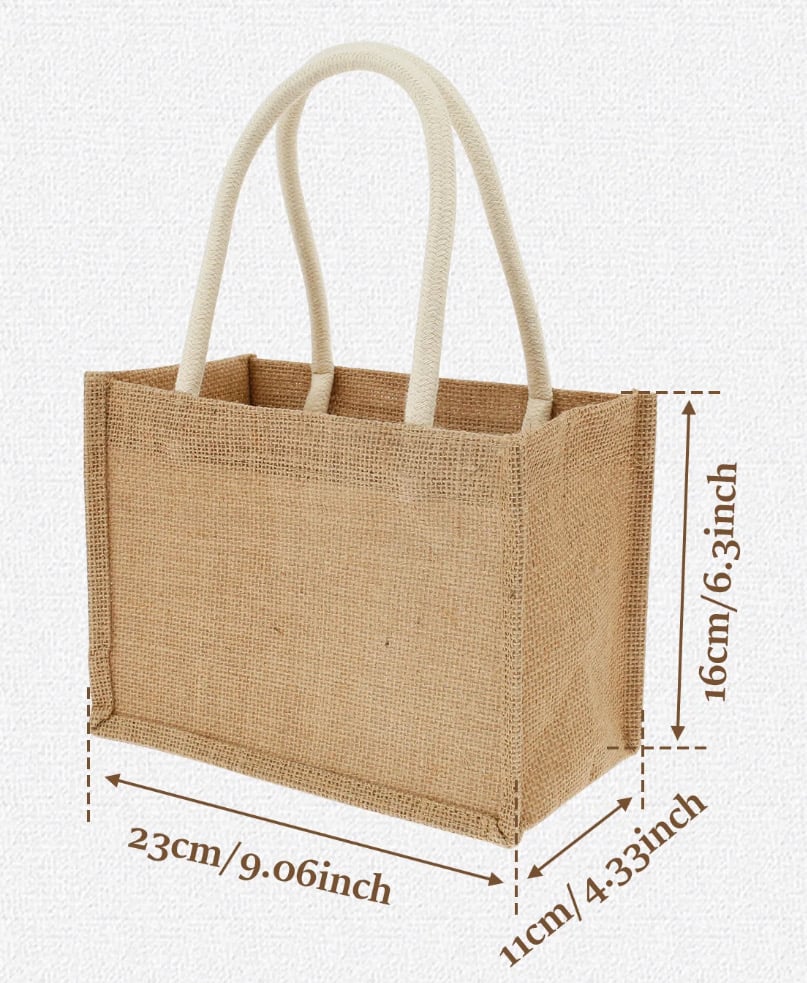 These are the cutest little tote bags! Perfect for a day or night out. Very lightweight, cotton handles and burlap material. Comes with the bow shown