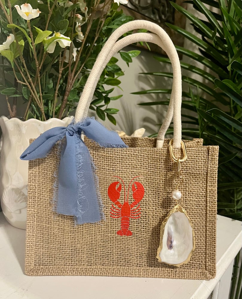 These are the cutest little tote bags! Perfect for a day or night out. Very lightweight, cotton handles and burlap material. Comes with the bow shown