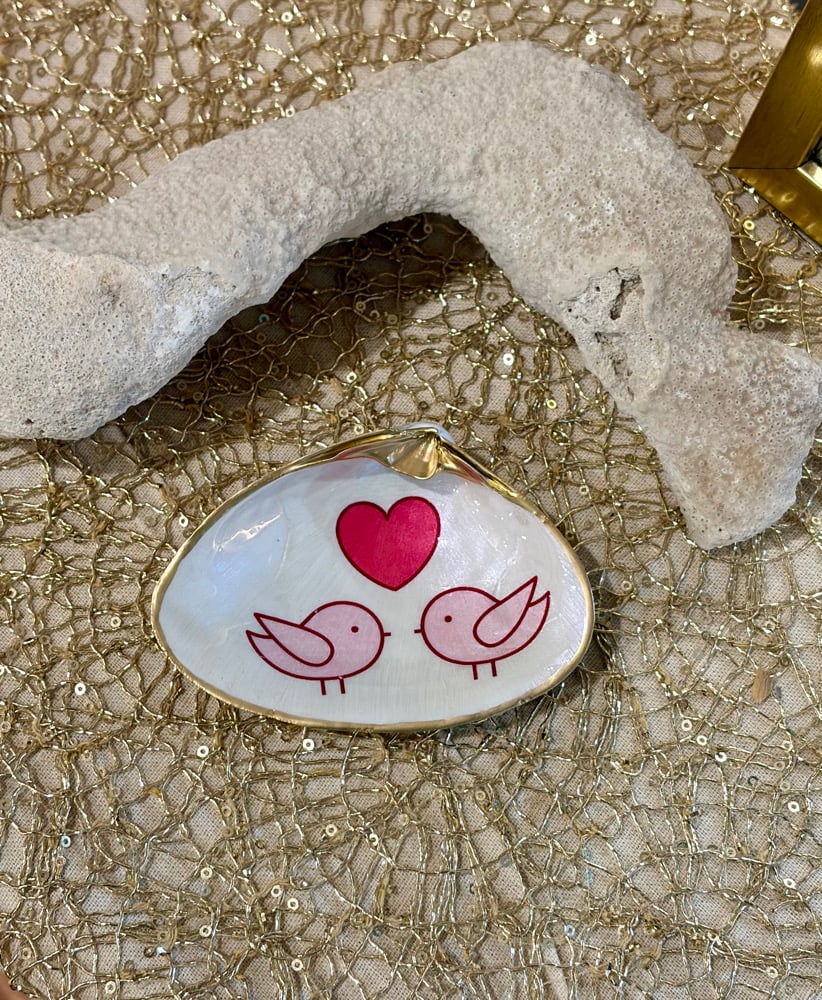 Love Birds Clam Shell Trinket Dish