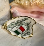 Beautiful natural finish with gold trim oyster shell to hold small jewelry/trinkets.